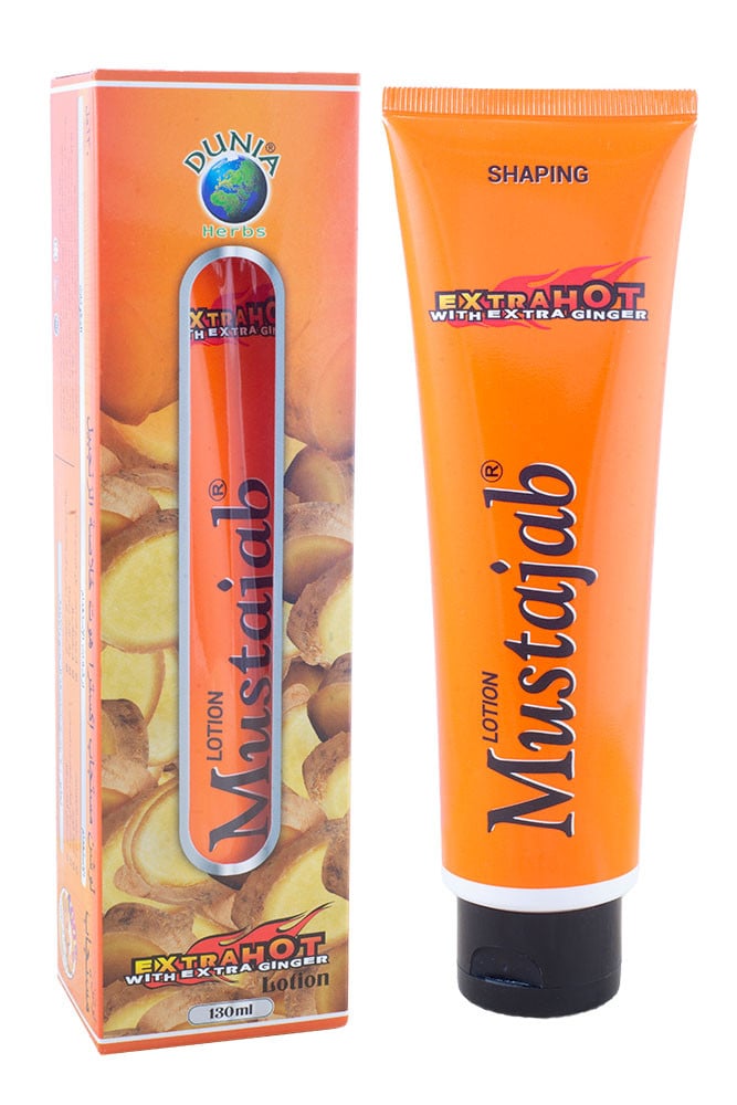 لوشن مستجاب وهو لوشن طبيعي مستخلص من الزنجبيل لوشن حراري للاستعمال اليومي على البشرة لكافة أفراد الأسرة. يحتوي على خلاصة فوائد الزنجبيل، والتي تعمل على تحفيز الدورة الدموية وترطيب البشرة وإراحة العضلات. يستخدم اللوشن بالتدليك بلطف على منطقة المفاصل والعضلات والقدمين والركبتين والظهر والبطن وغيرها من المناطق التي تحتاج إلى راحة وانتعاش.